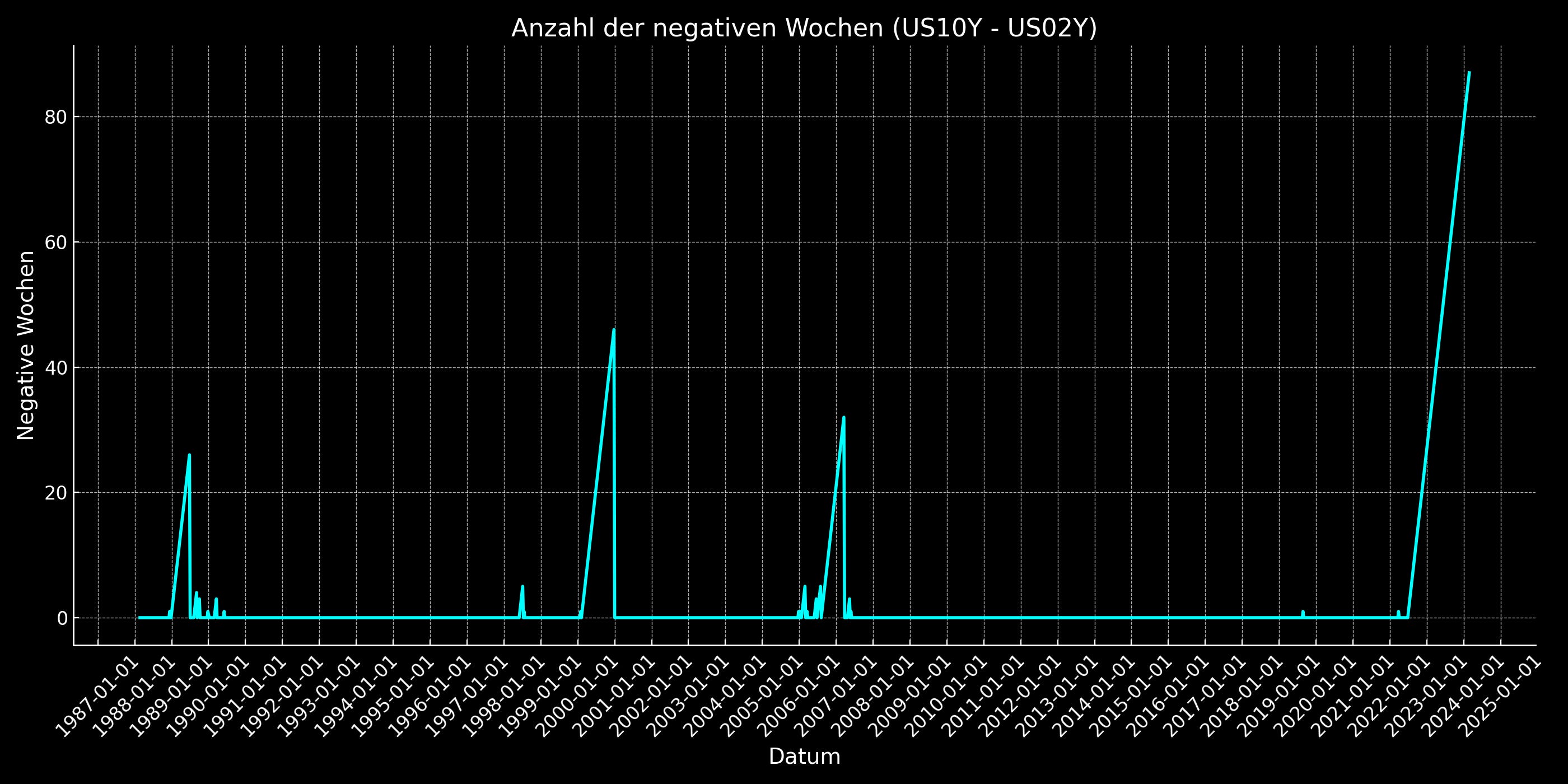 Wie es an der Börse üblich ist, bekommt man selten etwas geschenkt. Der Steepener Trade stellt einen Wettlauf gegen die Zeit dar, weshalb bereits viele an ihm gescheitert sind. Mittlerweile ist die Zinskurve seit 88 Wochen invers. Demnach ist präzises Timing entscheidend.