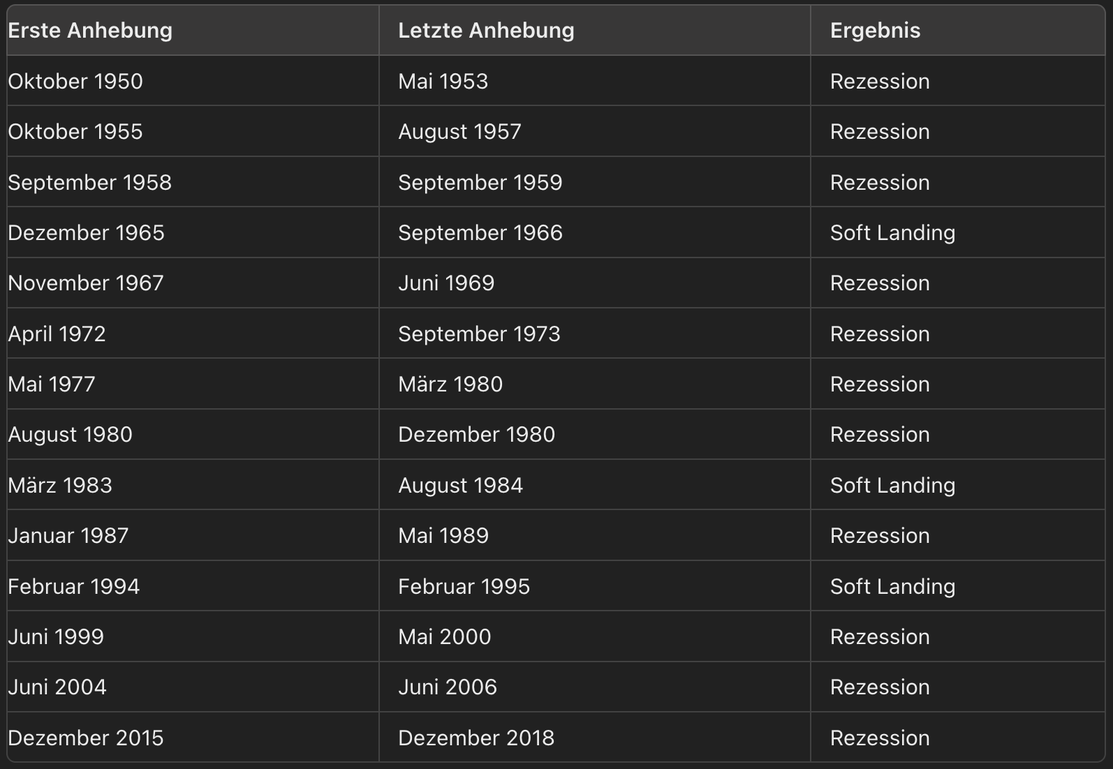 Es ist entscheidend, sich der Risiken bewusst zu sein. All meine Beiträge konzentrieren sich auf dieses Thema. Trotzdem, wie bereits in früheren Posts erwähnt, positioniere ich mich nicht „Short“, sondern bleibe durchgehend „Long“ (92%) und habe eine erhöhte Allokation in Fixed Income, die ebenfalls von einer sanften Abschwächung der Wirtschaft profitiert. Auch wenn wir ein „Soft Landing“ erreichen sollten, dürfen die nicht realisierten Risikopfade nicht unterschätzt werden. Historisch gesehen ist ein Soft Landing extrem selten.