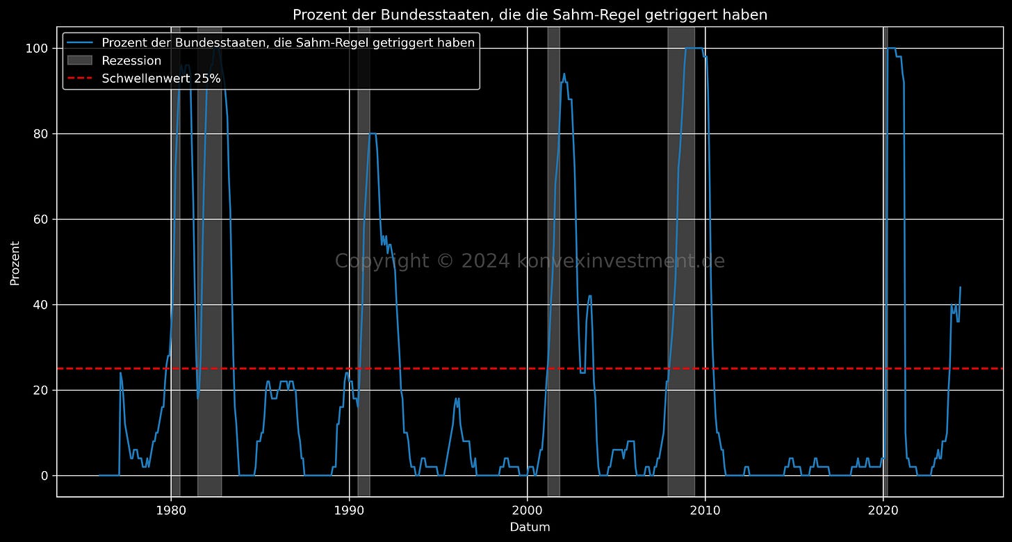Die Anzahl der Bundesstaaten, die einen starken Anstieg der Arbeitslosenquote erleben, hat weiter zugenommen. Historisch gesehen gibt es keinen kleinen Anstieg der Arbeitslosenquote. Einmal in Gang gesetzt, entstehen negative Feedbackschleifen, und die Arbeitslosenquote steigt massiv.