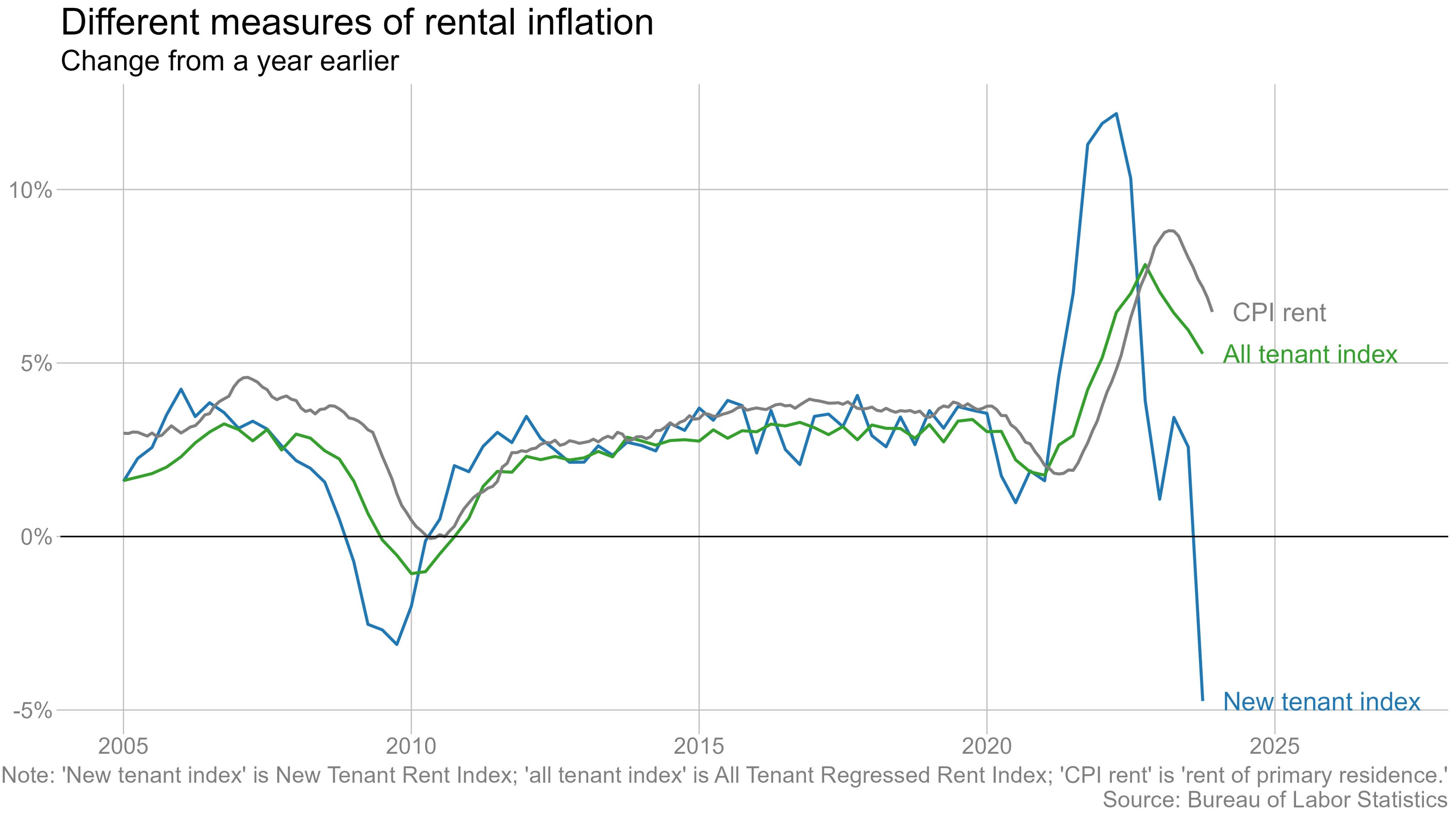 Ich bin mir der Tatsache bewusst, dass der Verbraucherpreisindex (CPI) deutlich höher ausfällt. Dies ist jedoch hauptsächlich auf die Shelter-Komponente (Mieten) zurückzuführen, die aufgrund der Methodik des Bureau of Labor Statistics (BLS) mit einer Verzögerung von sechs bis zwölf Monaten in die Berechnung einfließt. Echtzeitdaten von Quellen wie Zillow zeigen für die Shelter-Komponente einen massiven Rückgang. In den USA ist dies angesichts des umfangreichen Angebots an Mehrfamilienhäusern, das derzeit auf den Markt kommt, nicht überraschend. Dies wird voraussichtlich zu einem weiteren Druck auf die Mietpreise führen, wodurch deflationäre Tendenzen deutlich sichtbar werden.