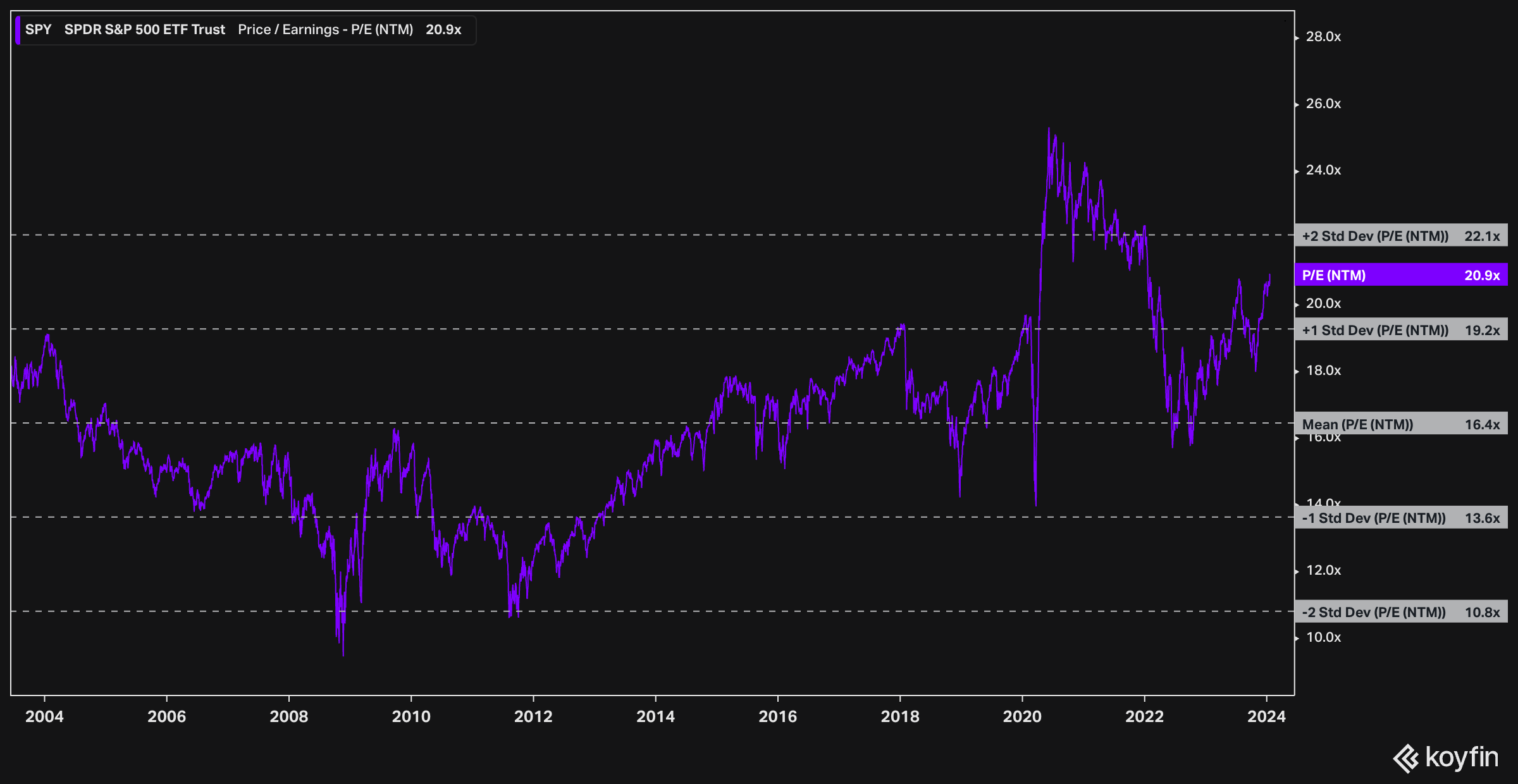 Nach mehr als zwei Jahren stehen wir nun bei einem nominalen Return von 0% und einem realen Return von -10% im S&P 500. Das aktuelle KGV im S&P 500 liegt über 21 (NTM, next twelve months). Interessanterweise wird ein Gewinnwachstum von 11% prognostiziert (es wird fast immer 10%+ erwartet). Für das Jahr 2023 wurde ebenfalls ein Gewinnwachstum von 10% erwartet, doch am Ende waren es nur 1% (Quelle: DoubleLine Capital). Die nächsten Jahre könnten daher besonders für aktive Händler von Vorteil sein. Ich bin froh, kein passiver Anleger zu sein!