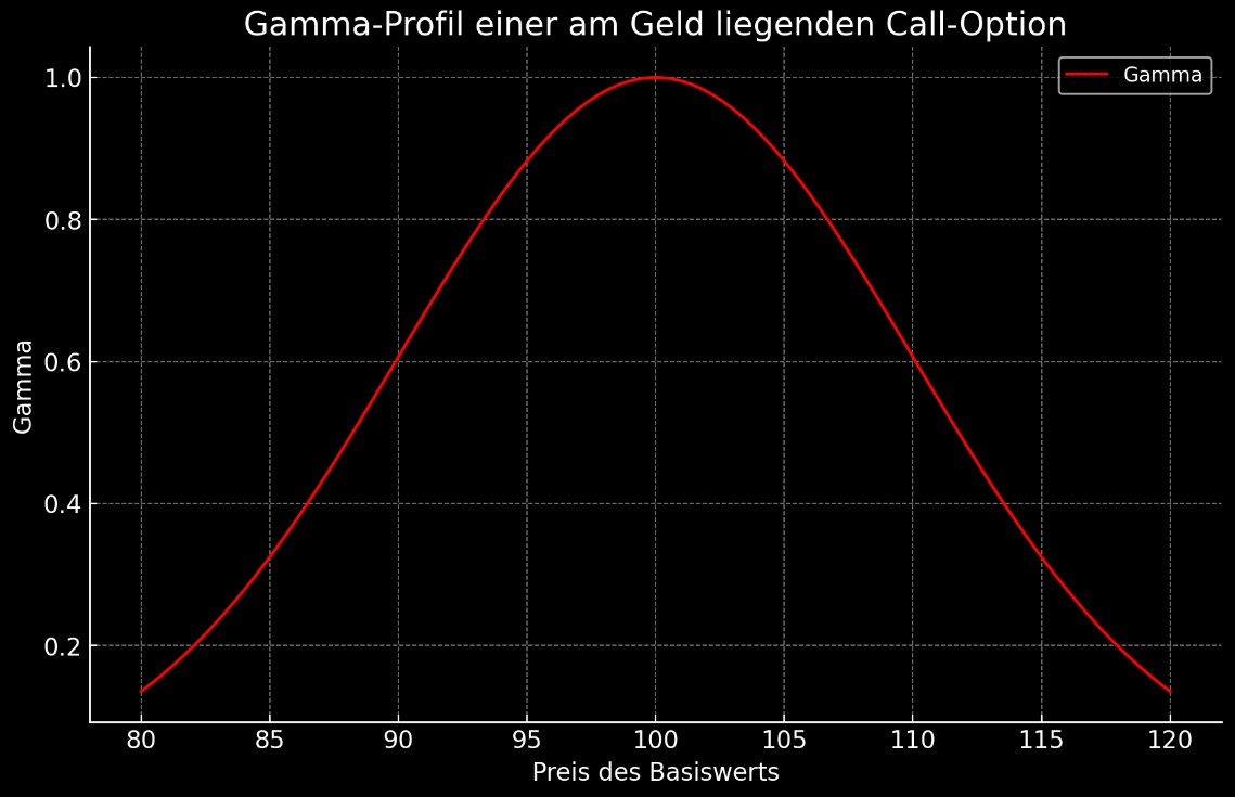 Gamma ist ein Maß für die Veränderungsrate des Deltas einer Option in Bezug auf die Preisänderungen des zugrunde liegenden Wertpapiers. Einfach ausgedrückt, beschreibt Gamma, wie schnell sich das Delta einer Option ändert, wenn sich der Preis des Basiswerts bewegt. Das Delta einer Option gibt an, um wie viel sich der Preis einer Option ändert, wenn sich der Preis des zugrunde liegenden Wertpapiers um eine Einheit ändert. Gamma ist somit die zweite Ableitung des Optionspreises nach dem Preis des zugrunde liegenden Wertpapiers und eine wichtige Kennzahl für das Risikomanagement von Optionsportfolios.