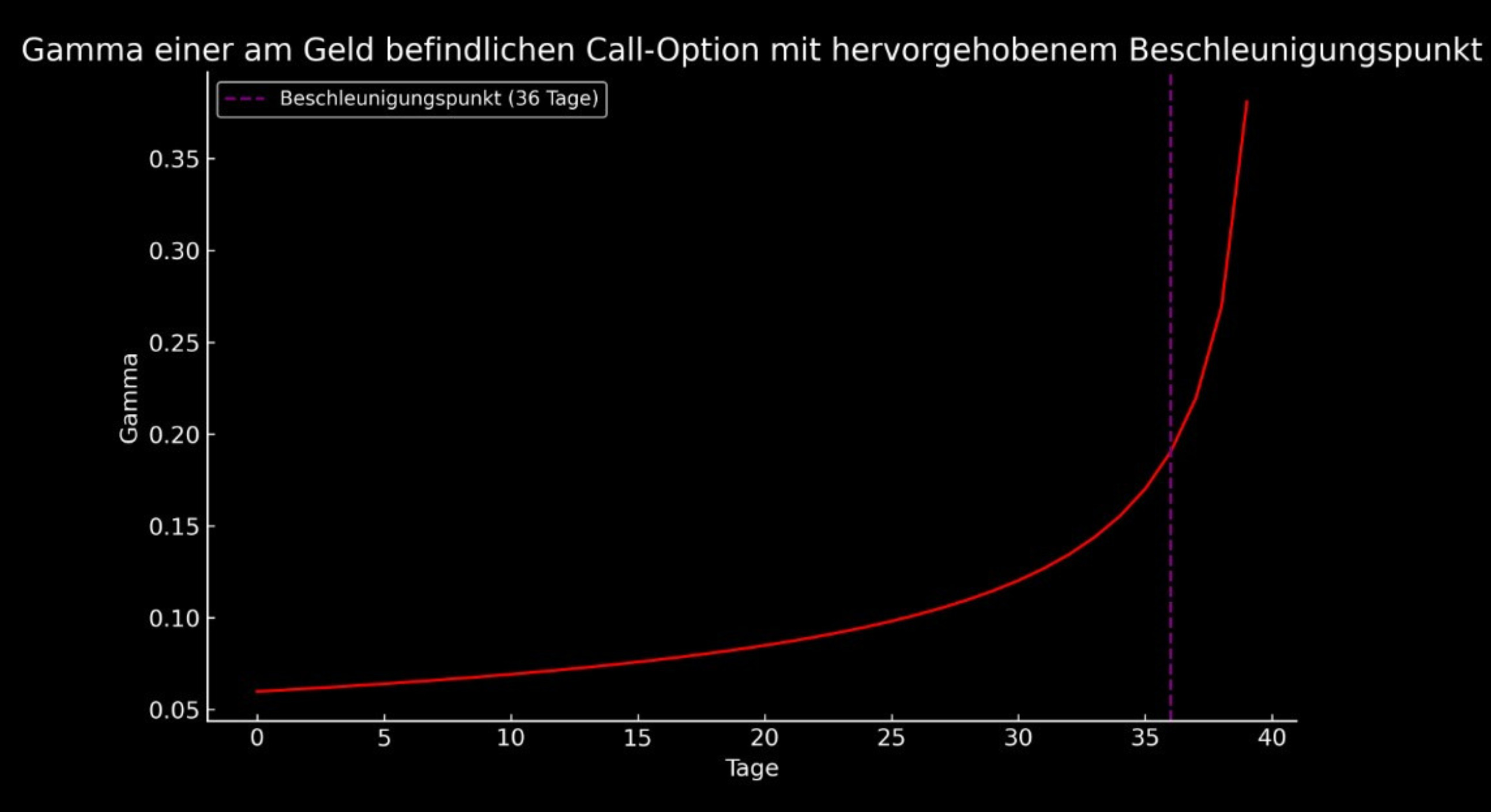 Ein hohes Gamma ist besonders in der Nähe des Verfallstags von Optionen relevant, da Preisänderungen des Basiswerts zu größeren Anpassungen im Delta führen können. Dies erfordert häufigeres Rebalancing des Portfolios durch die Händler, um die gewünschte Absicherungsposition beizubehalten.